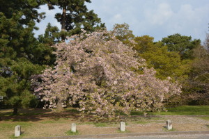 こちらは近衛邸跡入り口横の三段桜。やはり散り加減。